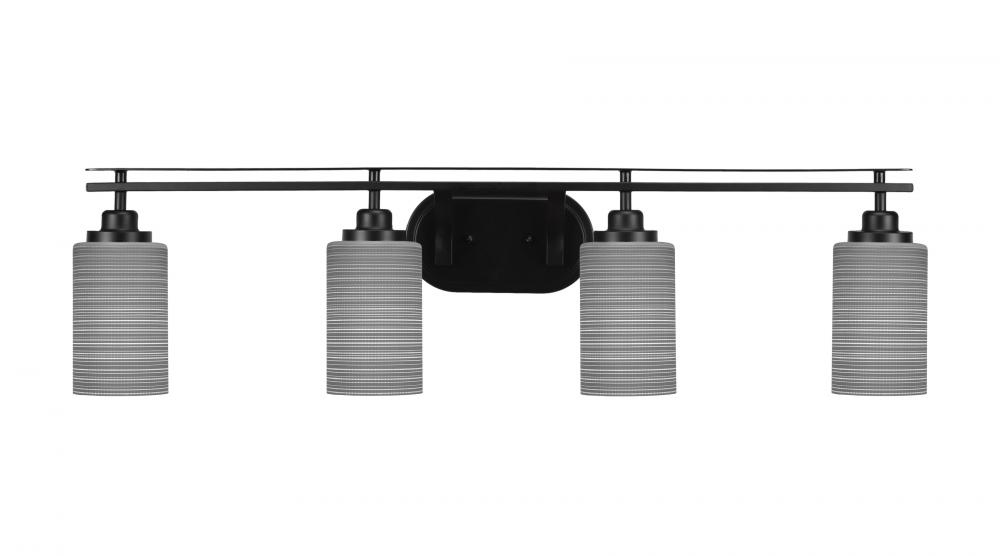Toltec Lighting 2614-MB-4062 Odyssey 4 Light Bath Bar Shown In Matte Black Finish With 4 Gray Matrix Glass