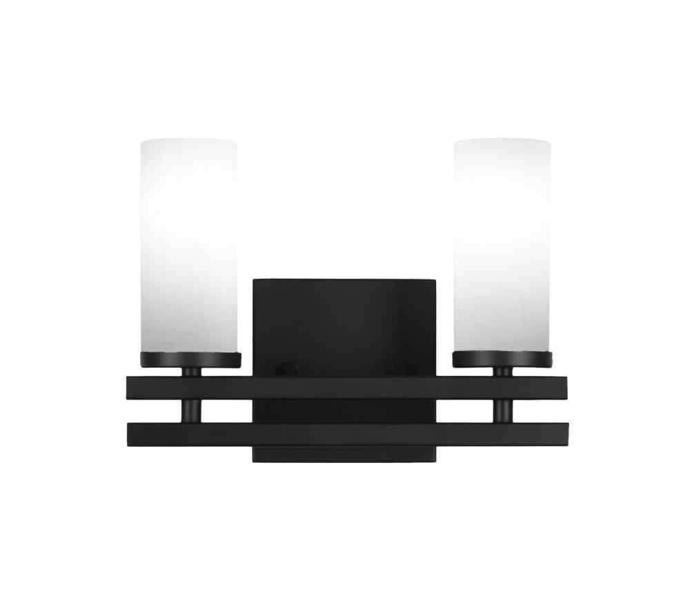 Toltec Lighting 2712-MB-801 Belmont 2 Light Bath Bar Shown In Matte Black Finish With 2.5? White Muslin Glass