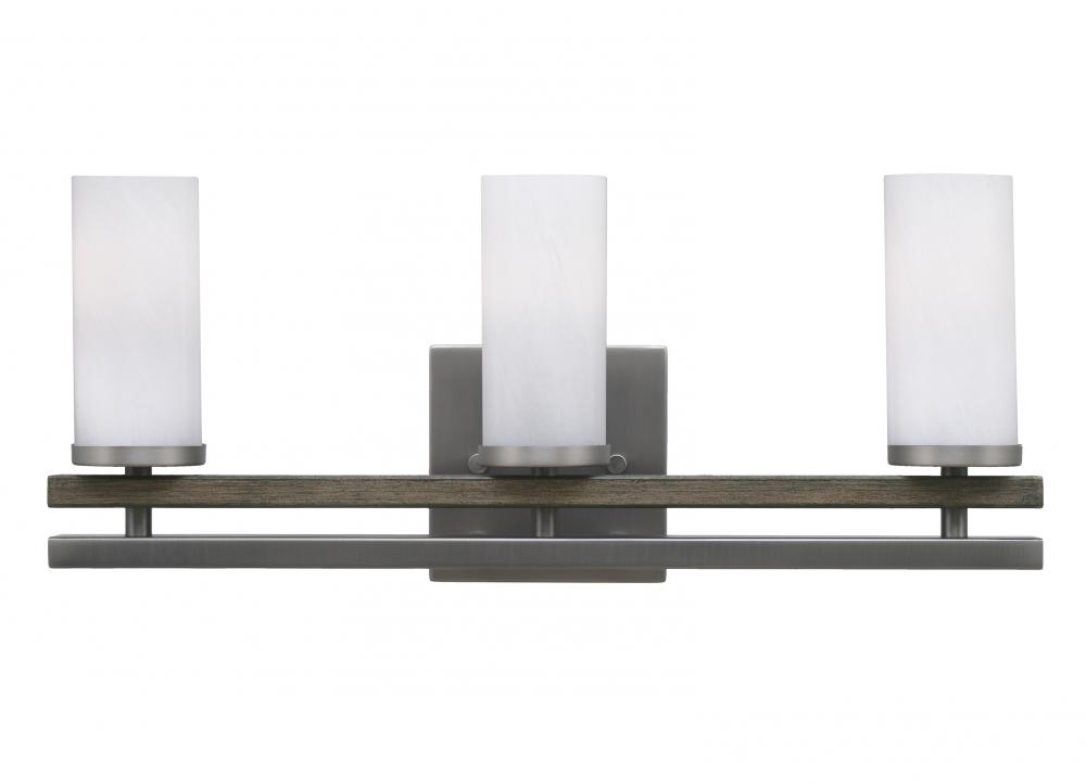 Belmont 3 Light Bath Bar In Graphite & Painted Distressed Wood-look Metal Finish With 2.5 White Marble Glass