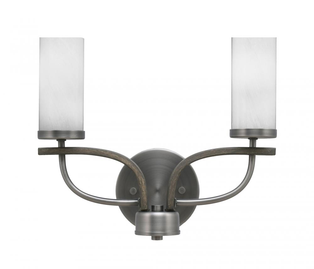 Monterey 2 Light Bath Bar In Graphite & Painted Distressed Wood-look Metal Finish With 2.5 White Marble Glass