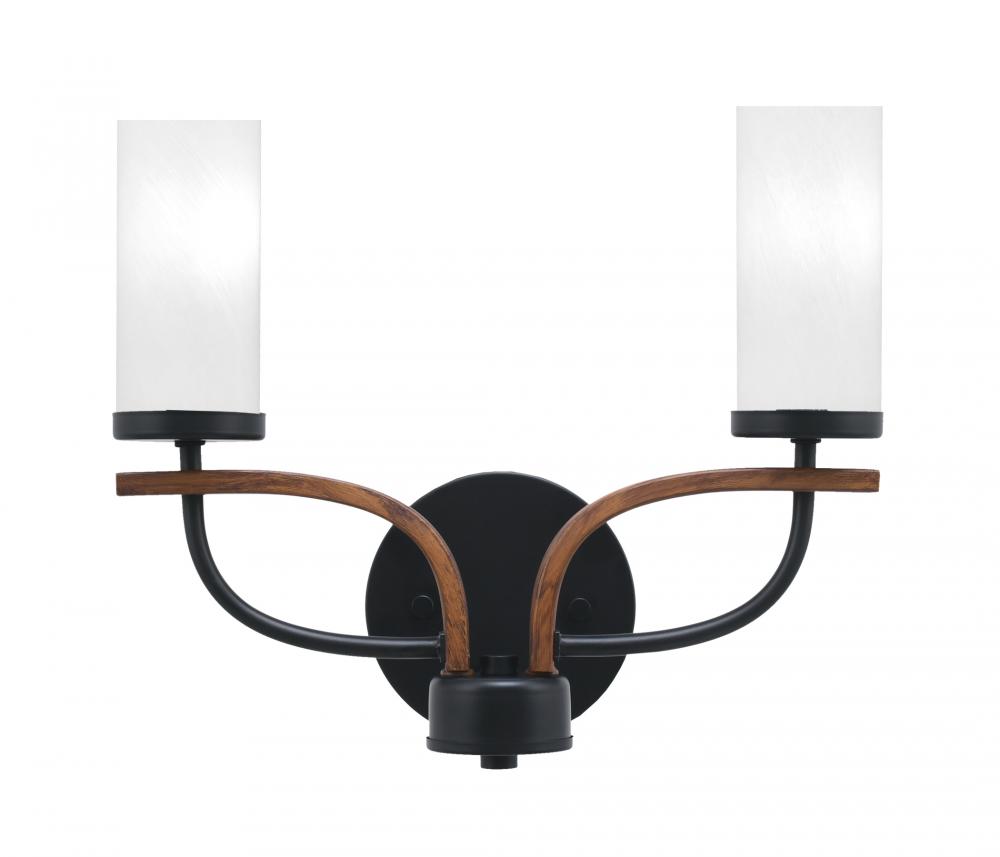 Monterey 2 Light Bath Bar In Matte Black & Painted Wood-look Metal Finish With 2.5 White Marble Glass