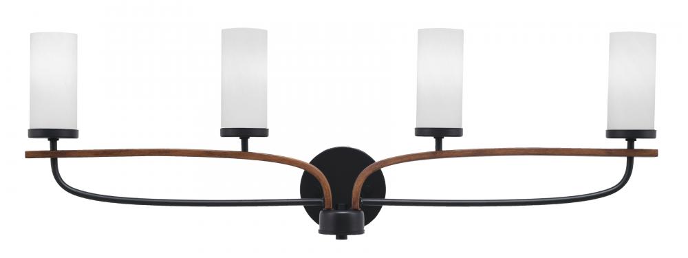 Monterey 4 Light Bath Bar In Matte Black & Painted Wood-look Metal Finish With 2.5 White Marble Glass