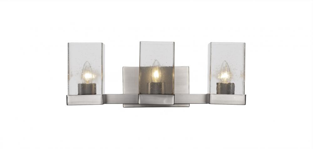 Toltec Lighting 3123-GP-530 Nouvelle 3 Light Bath Bar Shown In Graphite Finish With 4 Square Clear Bubble Glass