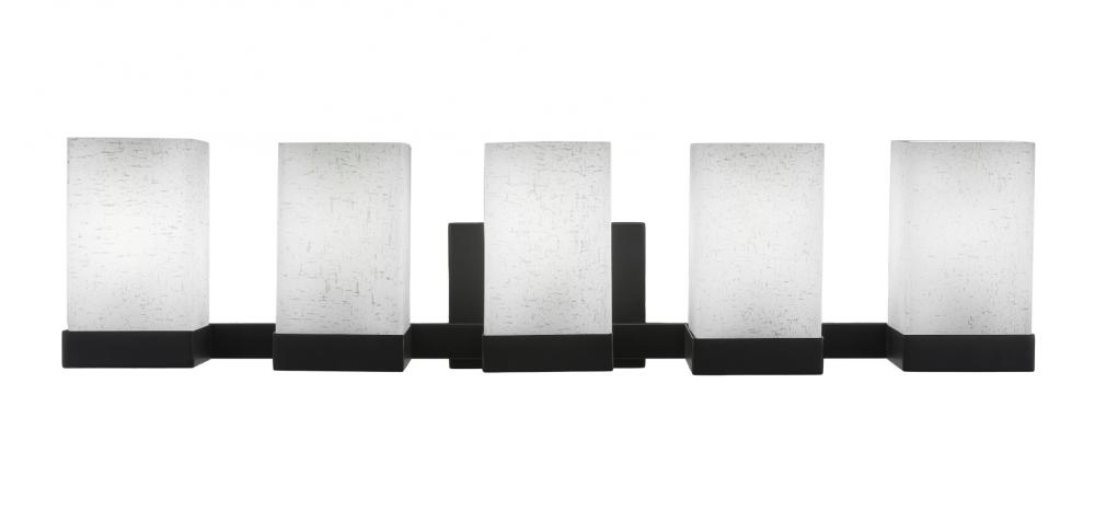 Toltec Lighting 3125-ES-531 Nouvelle 5 Light Bath Bar Shown In Espresso Finish With 4 Square White Muslin Glass
