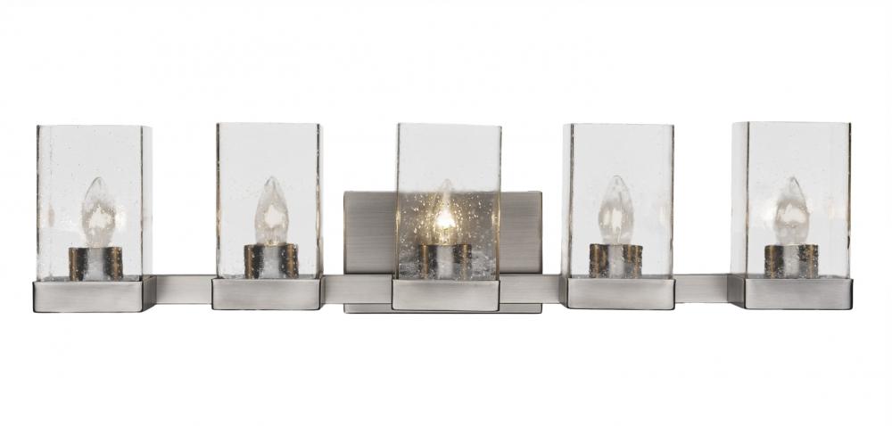 Toltec Lighting 3125-GP-530 Nouvelle 5 Light Bath Bar Shown In Graphite Finish With 4 Square Clear Bubble Glass