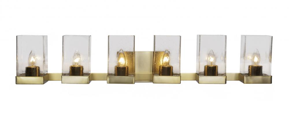 Toltec Lighting 3126-NAB-530 Nouvelle 6 Light Bath Bar Shown In New Age Brass Finish With 4 Square Clear Bubble Glass