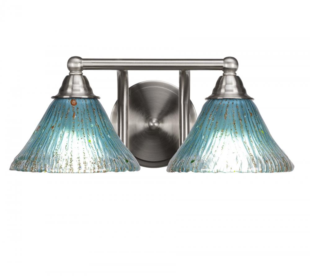 Paramount 2 Light Bath Bar In Brushed Nickel Finish With 7 Teal Crystal Glass