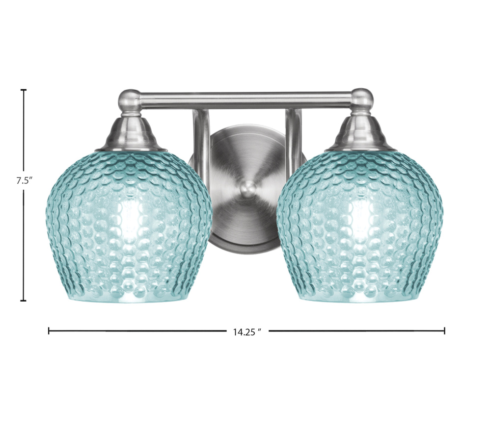 Paramount 2 Light Bath Bar Shown In Brushed Nickel Finish With 6 Turquoise Textured Glass