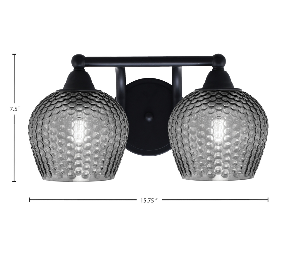 Paramount 2 Light Bath Bar Shown In Matte Black Finish With 6 Smoke Textured Glass