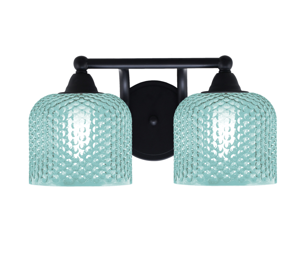 Paramount 2 Light Bath Bar Shown In Matte Black Finish With 6 Turquoise Textured Glass