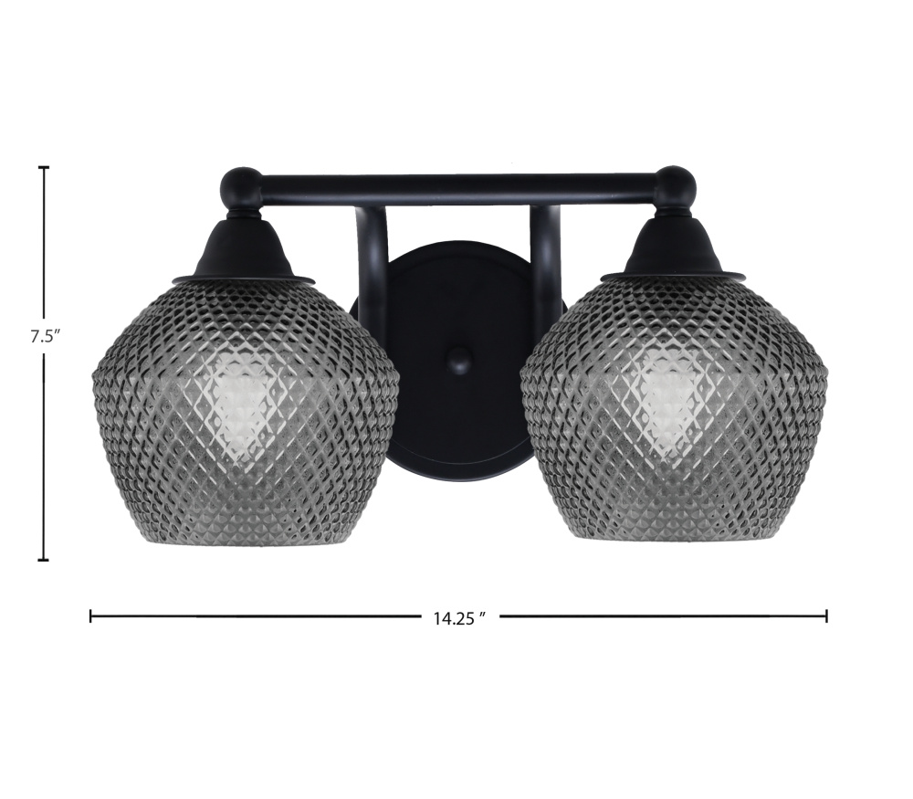 Paramount 2 Light Bath Bar Shown In Matte Black Finish With 6 Smoke Textured Glass
