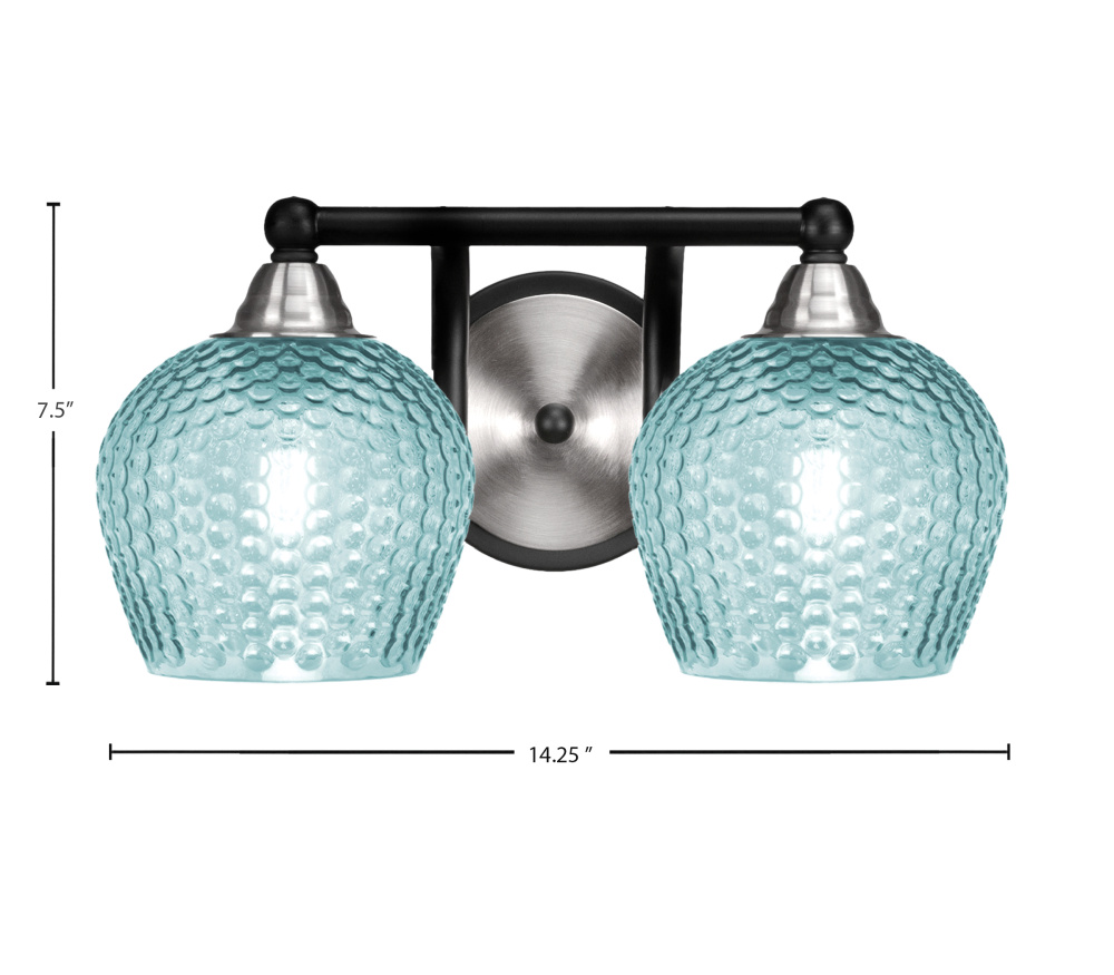 Paramount 2 Light Bath Bar Shown In Matte Black & Brushed Nickel Finish With 6 Turquoise Textured Glass