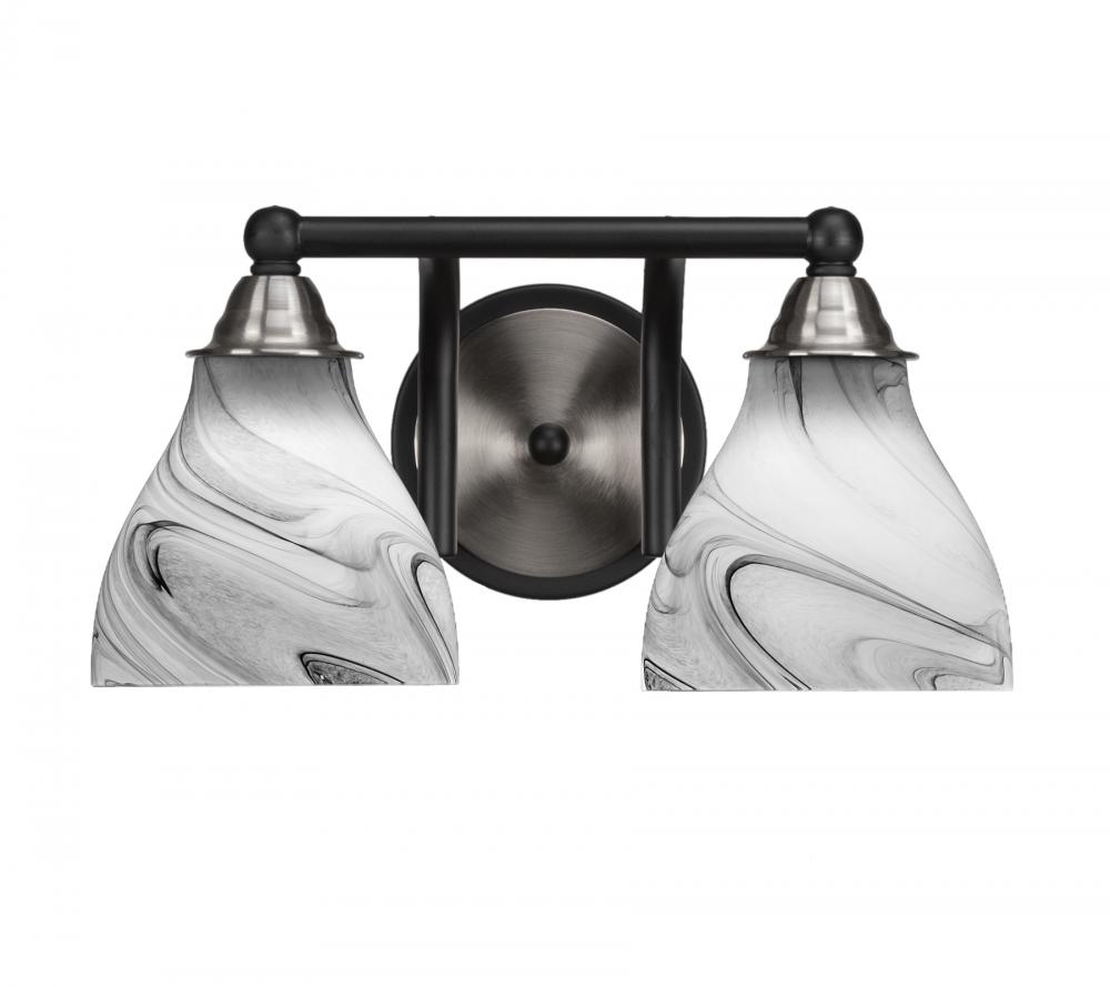 Paramount 2 Light Bath Bar In Matte Black & Brushed Nickel Finish With 6.25 Onyx Swirl Glass
