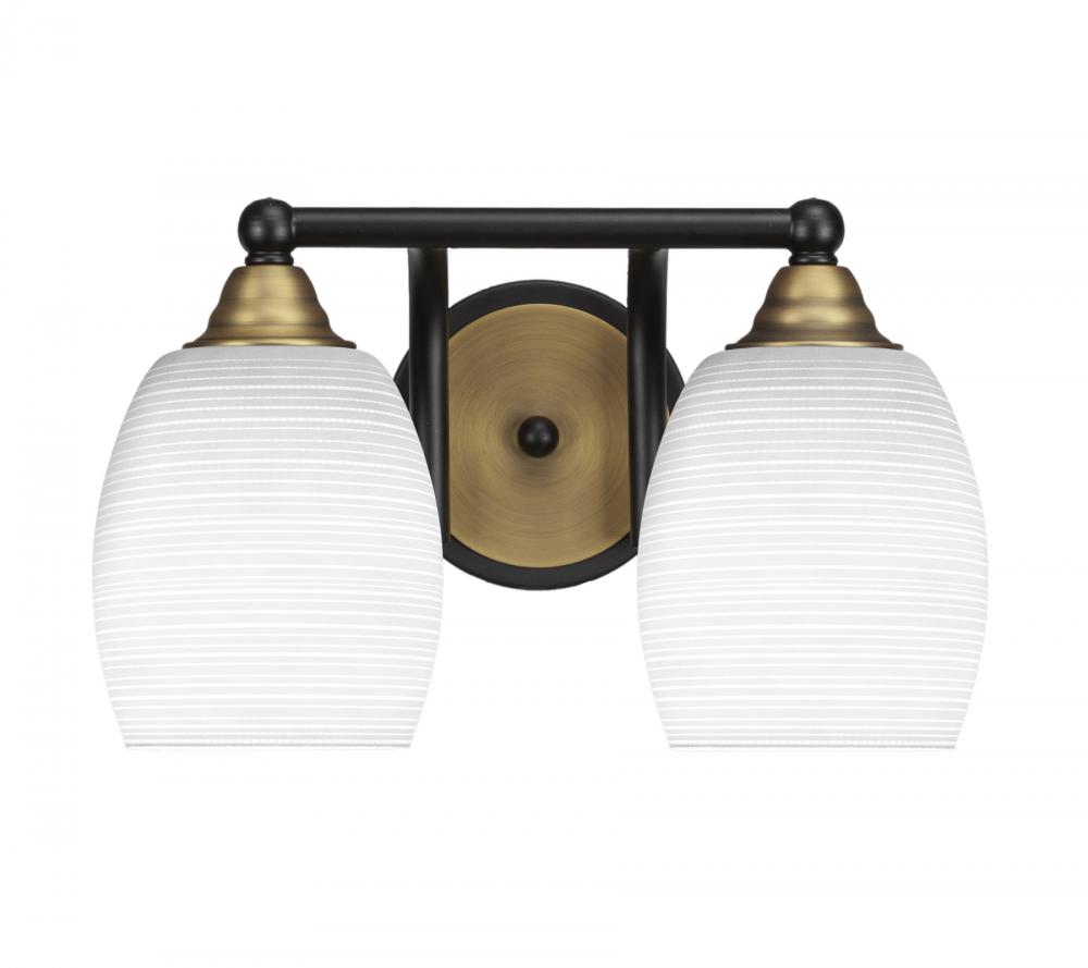 Paramount 2 Light Bath Bar In Matte Black & Brass Finish With 5 White Matrix Glass