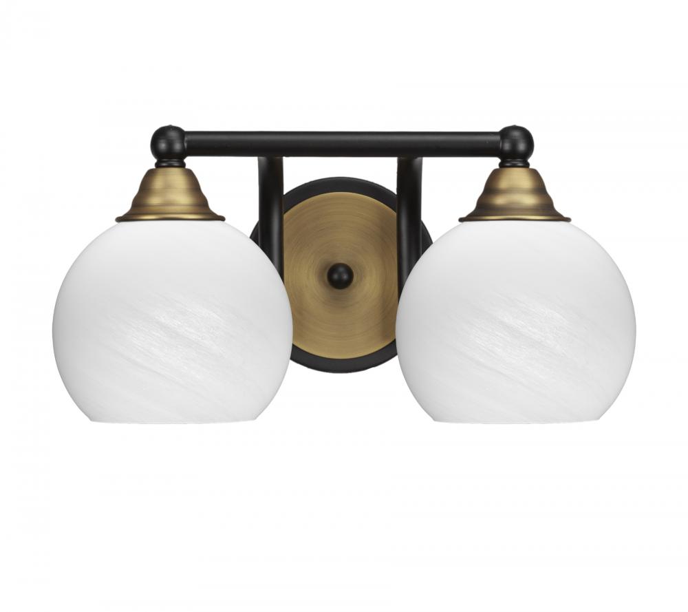Paramount 2 Light Bath Bar In Matte Black & Brass Finish With 5.75 White Marble Glass