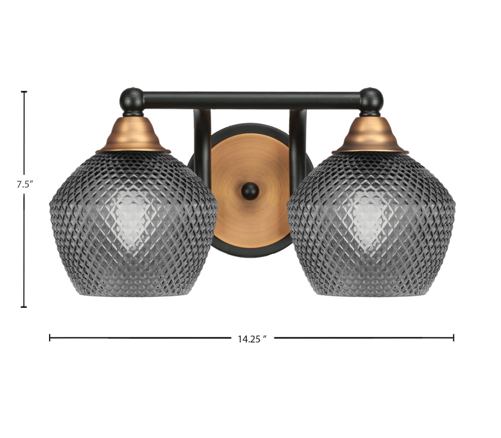 Paramount 2 Light Bath Bar Shown In Matte Black & Brass Finish With 6 Smoke Textured Glass