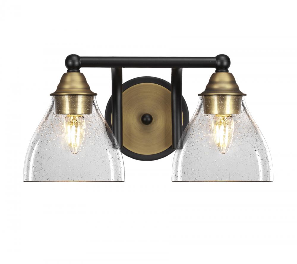Paramount 2 Light Bath Bar In Matte Black & Brass Finish With 6.25 Clear Bubble Glass