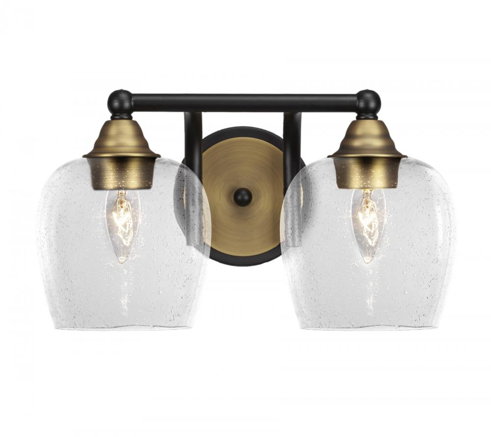 Paramount 2 Light Bath Bar In Matte Black & Brass Finish With 6 Clear Bubble Glass