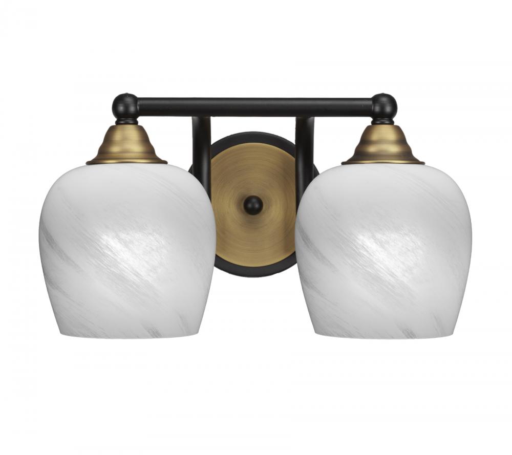 Paramount 2 Light Bath Bar In Matte Black & Brass Finish With 6 White Marble Glass