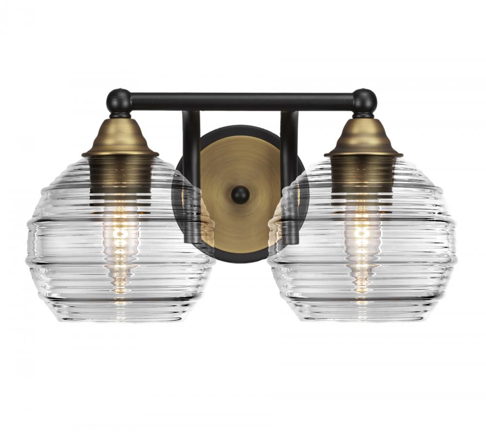 Paramount 2 Light Bath Bar In Matte Black & Brass Finish With 6 Clear Ribbed Glass