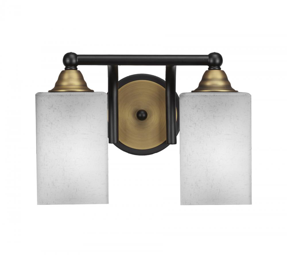 Paramount 2 Light Bath Bar In Matte Black & Brass Finish With 4 White Muslin Glass