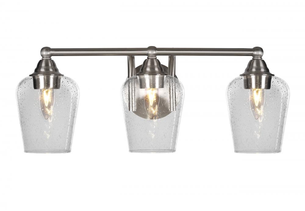 Paramount 3 Light Bath Bar In Brushed Nickel Finish With 5 Clear Bubble Glass