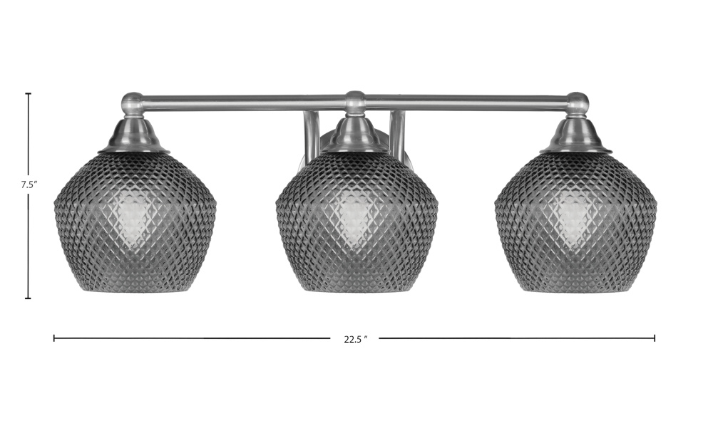 Paramount 3 Light Bath Bar Shown In Brushed Nickel Finish With 6 Smoke Textured Glass