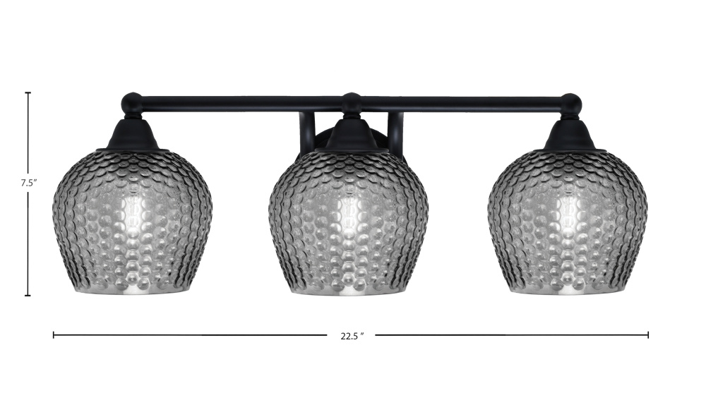 Paramount 3 Light Bath Bar Shown In Matte Black Finish With 6 Smoke Textured Glass