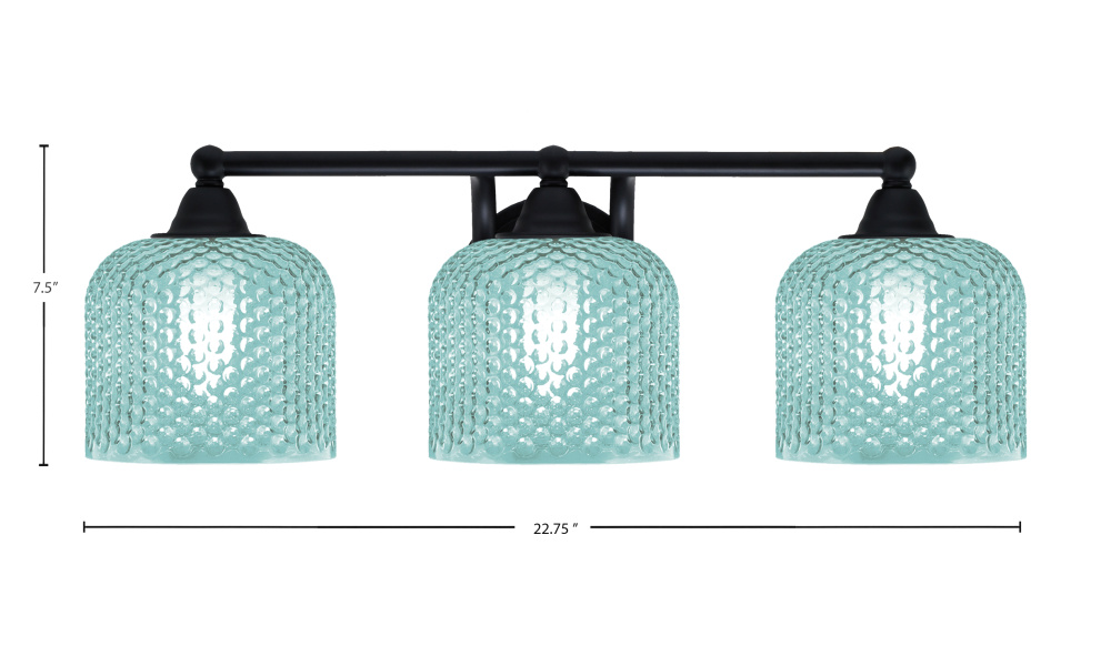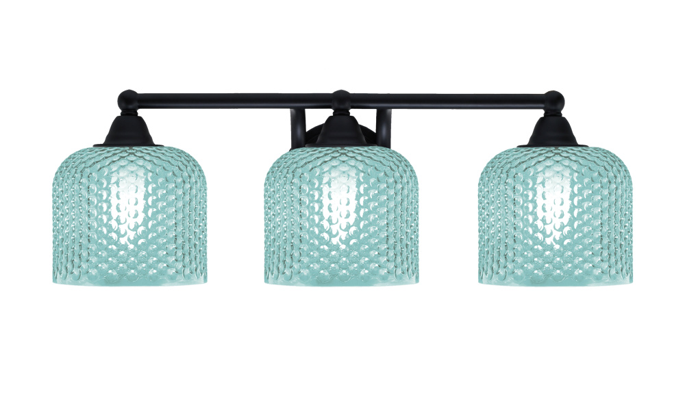 Paramount 3 Light Bath Bar Shown In Matte Black Finish With 6 Turquoise Textured Glass