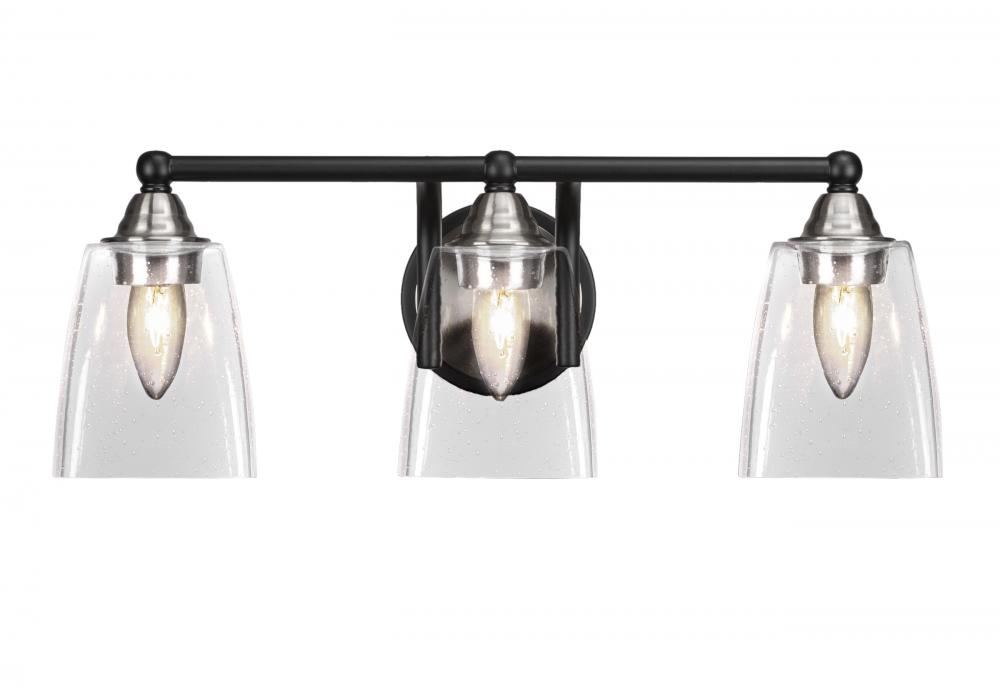 Paramount 3 Light Bath Bar In Matte Black & Brushed Nickel Finish With 4.5 Clear Bubble Glass