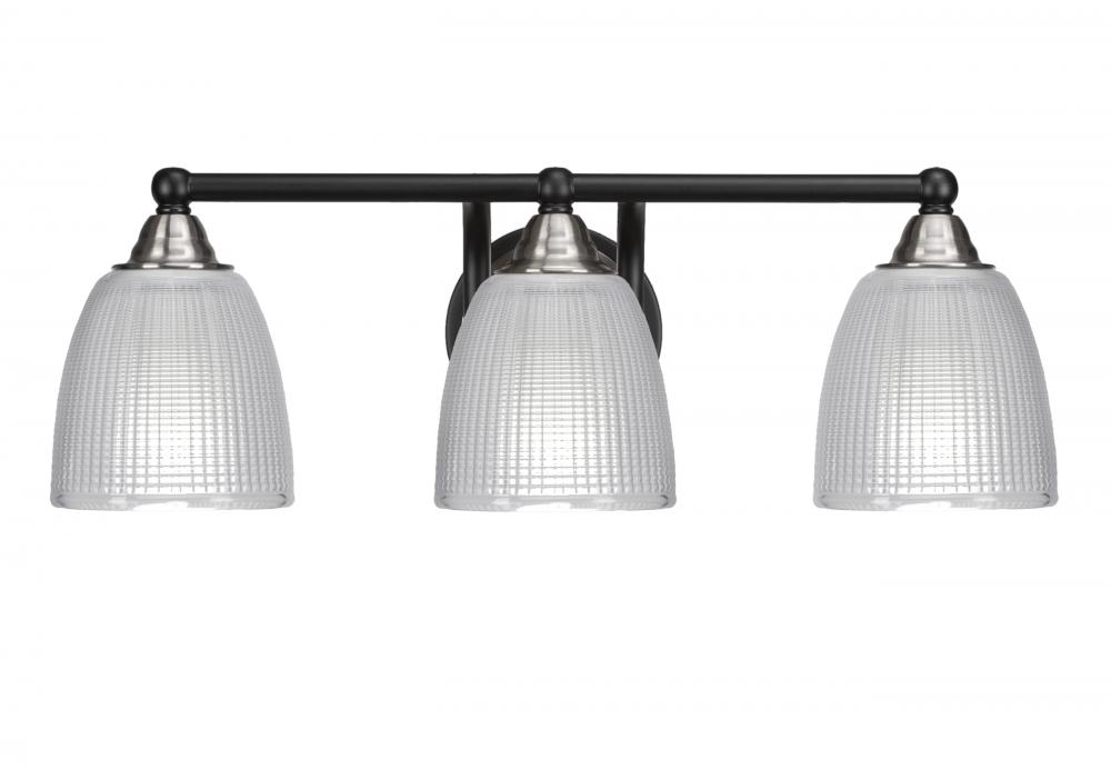 Paramount 3 Light Bath Bar In Matte Black & Brushed Nickel Finish With 5 Clear Ribbed Glass