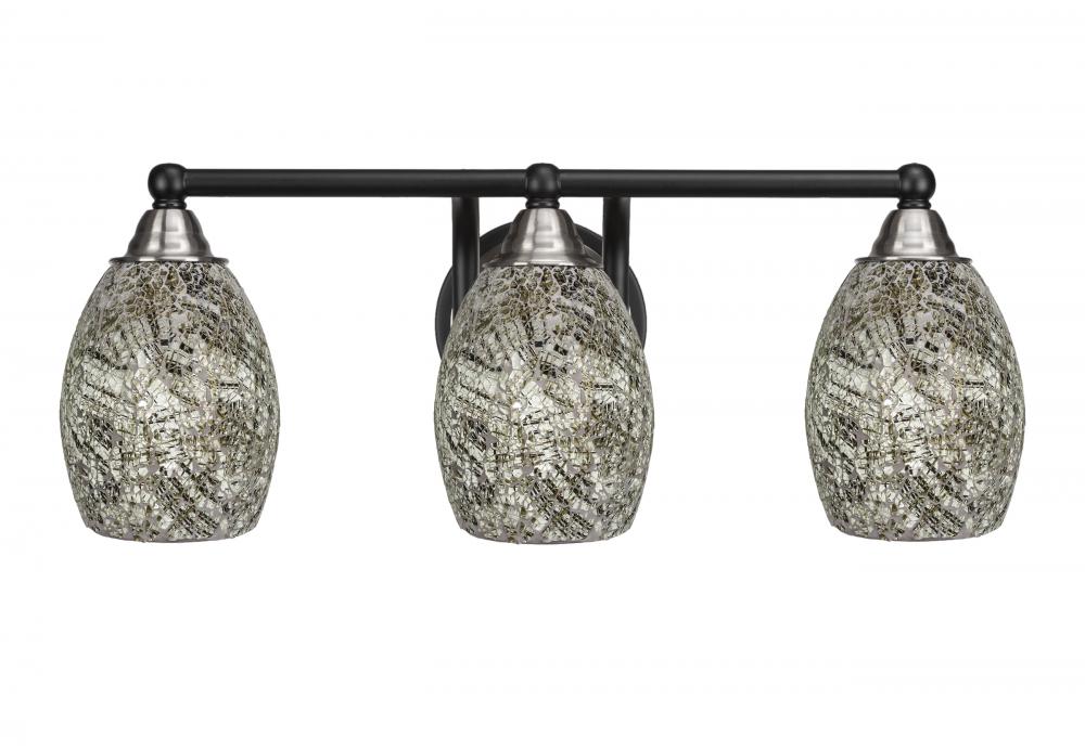 Paramount 3 Light Bath Bar In Matte Black & Brushed Nickel Finish With 5 Natural Fusion Glass