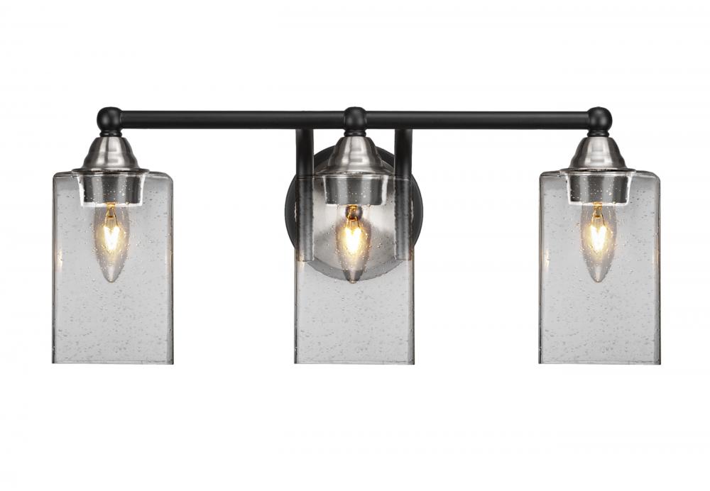 Paramount 3 Light Bath Bar In Matte Black & Brushed Nickel Finish With 4 Clear Bubble Glass