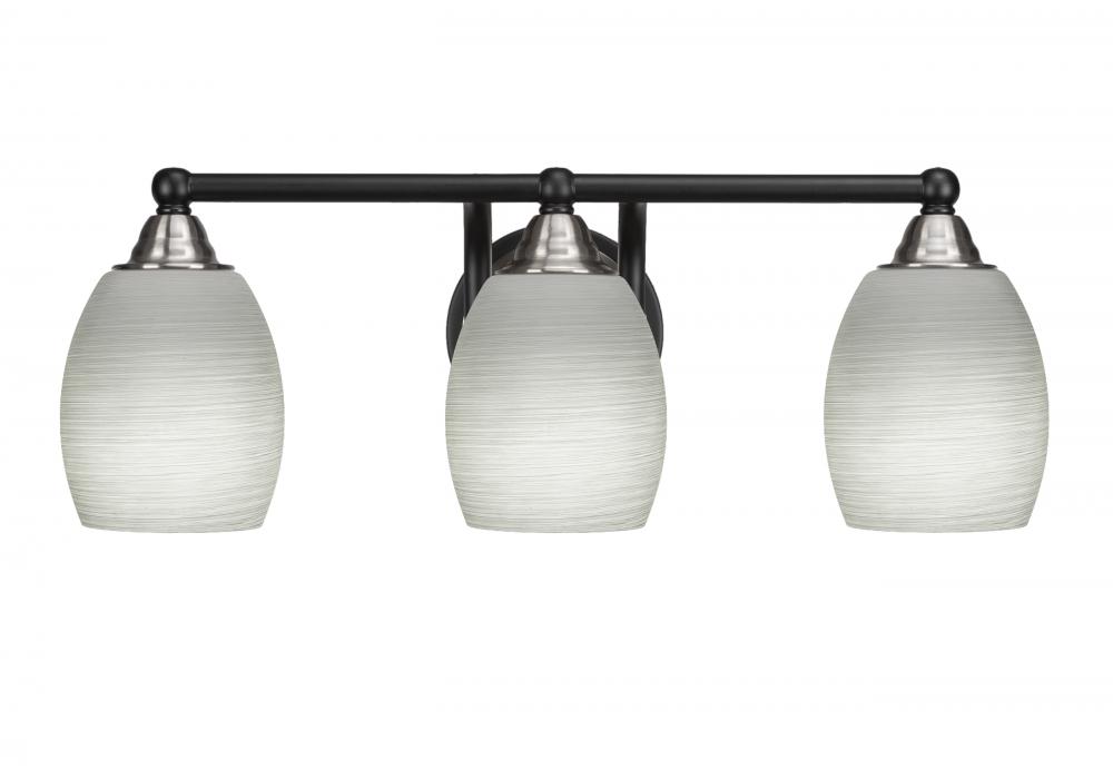 Paramount 3 Light Bath Bar In Matte Black & Brushed Nickel Finish With 5 White Linen Glass