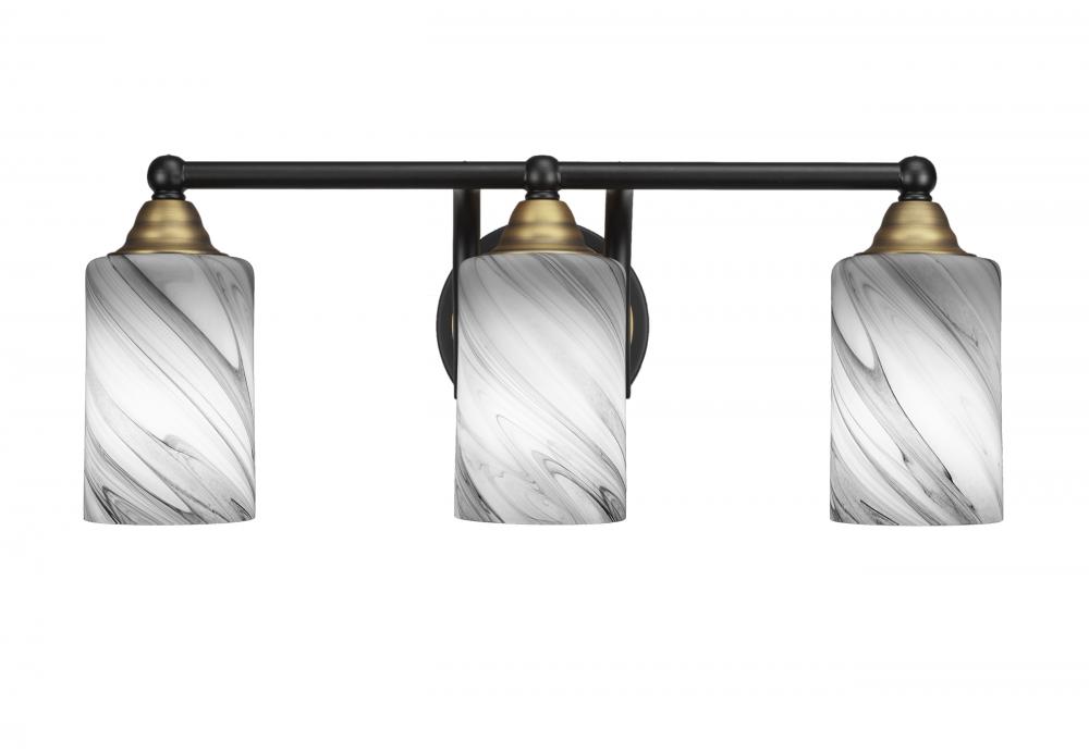 Paramount 3 Light Bath Bar In Matte Black & Brass Finish With 4 Onyx Swirl Glass