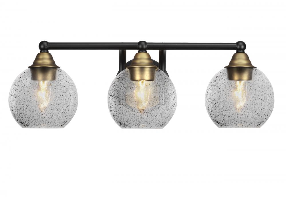 Paramount 3 Light Bath Bar In Matte Black & Brass Finish With 5.75 Smoke Bubble Glass