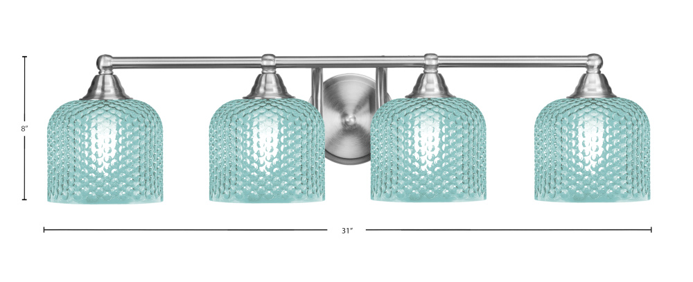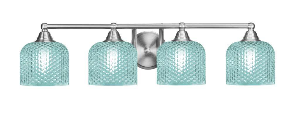 Paramount 4 Light Bath Bar Shown In Brushed Nickel Finish With 6 Turquoise Textured Glass