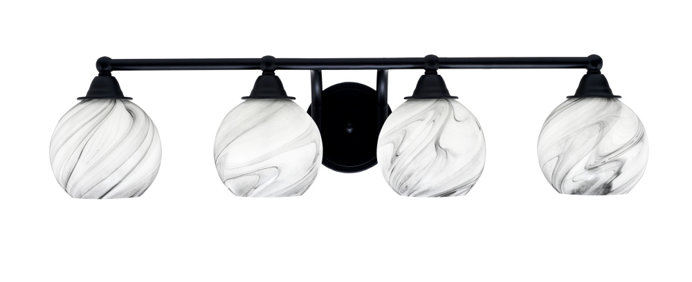Toltec Lighting 3424-MB-4109 Paramount 4 Light Bath Bar Shown In Matte Black Finish With 5.75 Onyx Swirl Glass
