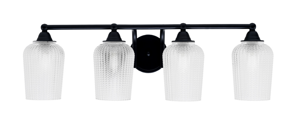 Toltec Lighting 3424-MB-4250 Paramount 4 Light Bath Bar Shown In Matte Black Finish With 5 Clear Textured Glass
