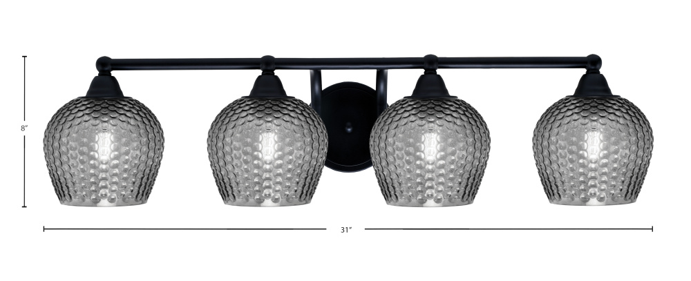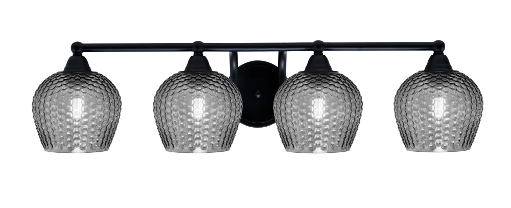 Paramount 4 Light Bath Bar Shown In Matte Black Finish With 6 Smoke Textured Glass