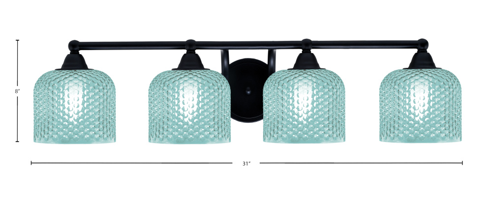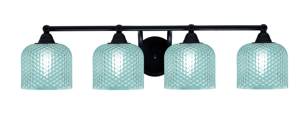 Paramount 4 Light Bath Bar Shown In Matte Black Finish With 6 Turquoise Textured Glass