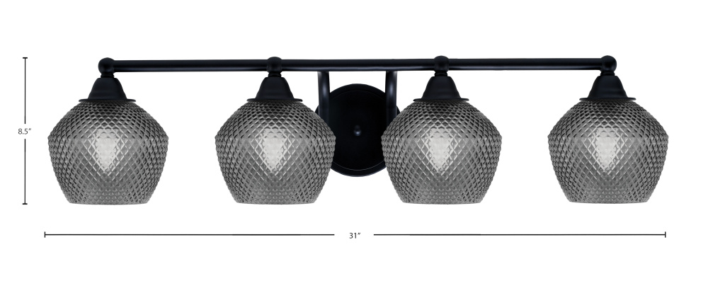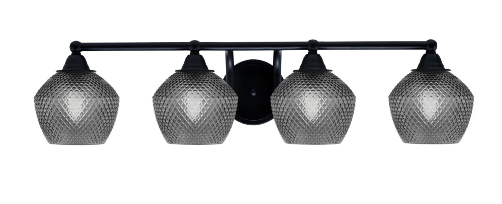 Paramount 4 Light Bath Bar Shown In Matte Black Finish With 6 Smoke Textured Glass