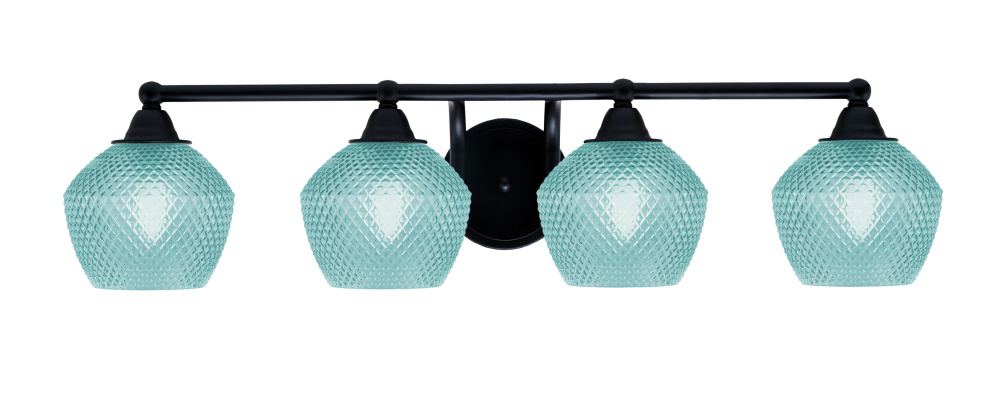 Paramount 4 Light Bath Bar Shown In Matte Black Finish With 6 Turquoise Textured Glass