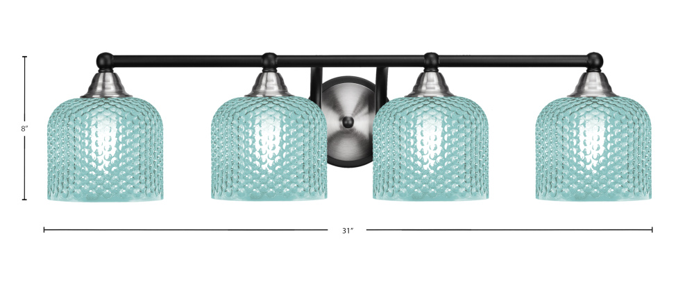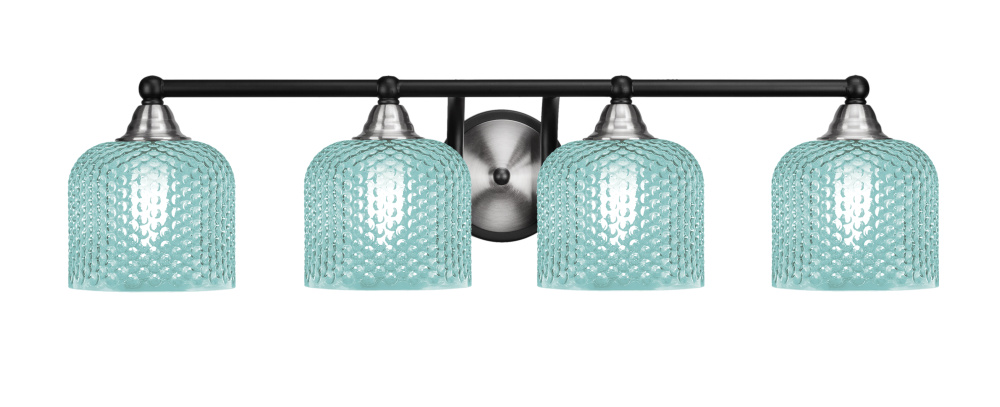 Paramount 4 Light Bath Bar Shown In Matte Black & Brushed Nickel Finish With 6 Turquoise Textured Glass