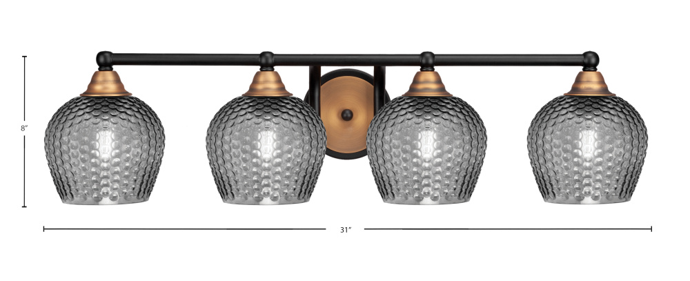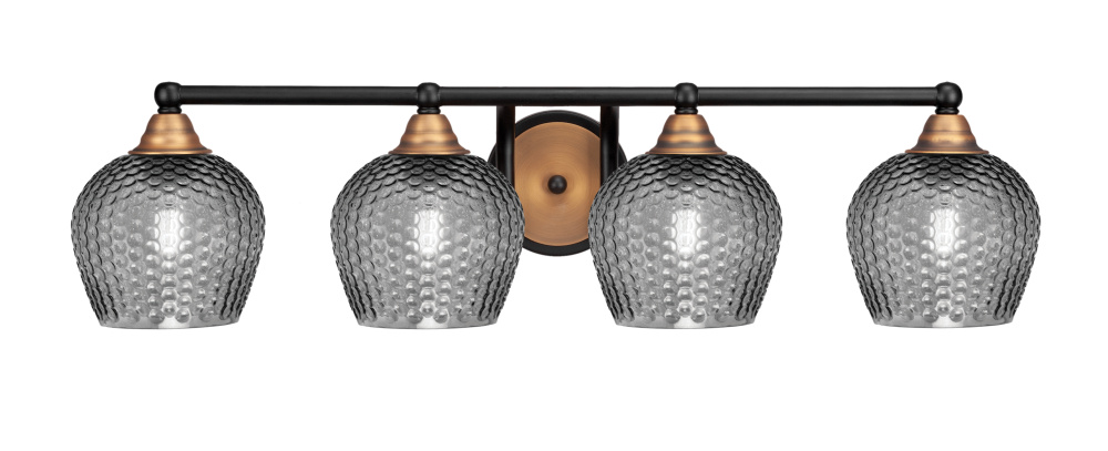 Paramount 4 Light Bath Bar Shown In Matte Black & Brass Finish With 6 Smoke Textured Glass