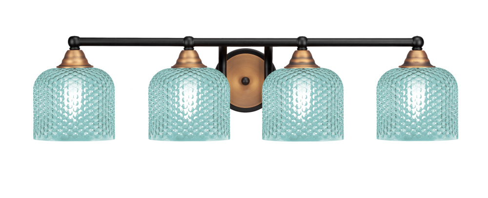 Paramount 4 Light Bath Bar Shown In Matte Black & Brass Finish With 6 Turquoise Textured Glass