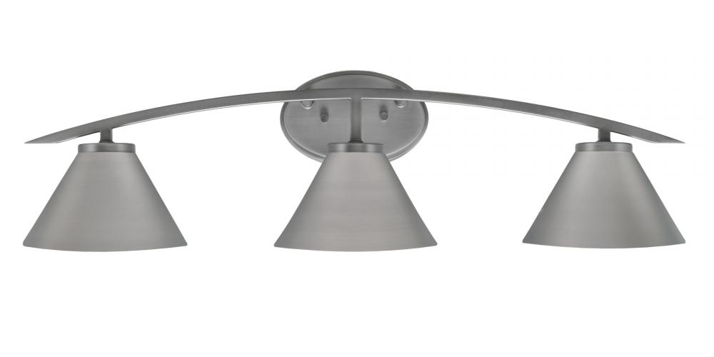 Toltec Lighting 3723-GP-421-GP Kurve 3 Light Bath Bar, Graphite Finish, 7 Graphite Cone Metal Shades