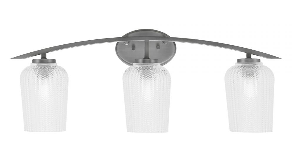 Toltec Lighting 3723-GP-4250 Kurve 3 Light Bath Bar, Graphite Finish, 5 Clear Textured Glass