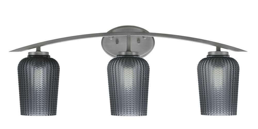 Toltec Lighting 3723-GP-4252 Kurve 3 Light Bath Bar, Graphite Finish, 5 Smoke Textured Glass