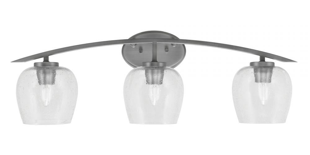 Toltec Lighting 3723-GP-4810 Kurve 3 Light Bath Bar, Graphite Finish, 6 Clear Bubble Glass